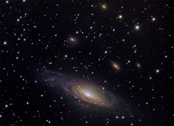 NGC 7331 was discovered in 1784 by William Herschel and is part of the "Deer Lick" group of galaxies, some of which are visible in the background (and identified in the large image). These galaxies are not gravitationally bound galaxies, but rather they just happen to be in the same line of sight. |